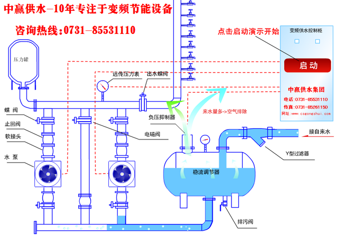 2018年9月6日,湖北赤壁客戶再次咨詢一套無負(fù)壓供水設(shè)備。該項目水源為自來水。直接連接在自來水管上面。消除二次污染,更加環(huán)保!用于學(xué)校住宿樓用水,該項目總出水點300個,7層樓!